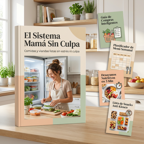 Usás un sistema simple de batch cooking + freezer + rotación de menú infantil, probado por mamás reales para que nunca más tengas que pensar “¿qué les mando o qué les doy mañana?”